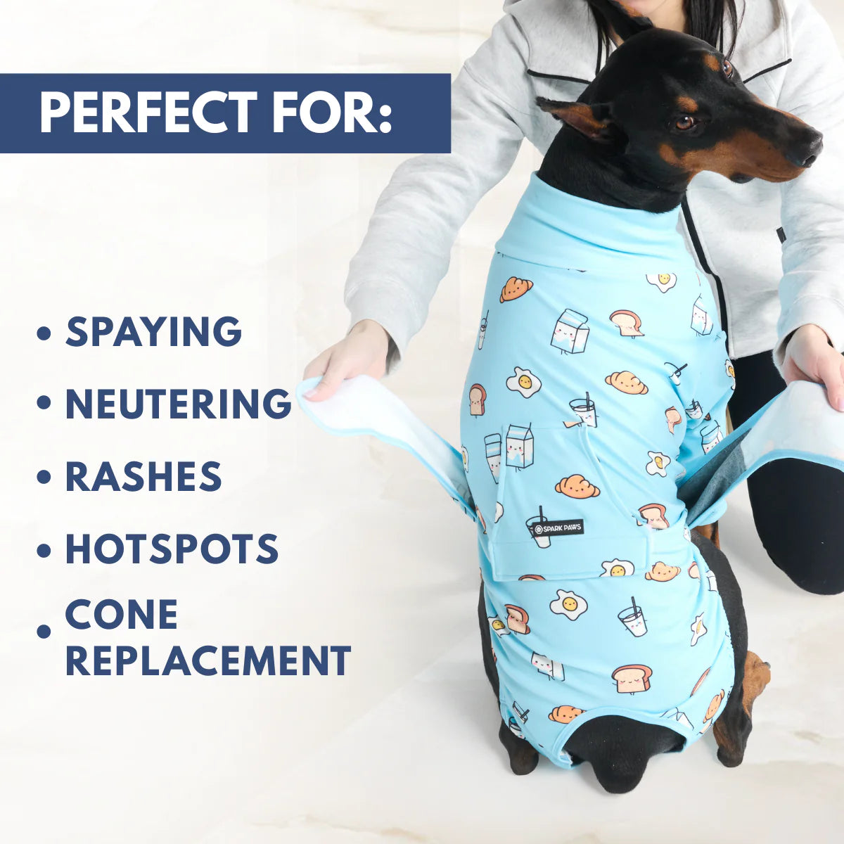 Dog Surgical Suit - Breakfast Blue